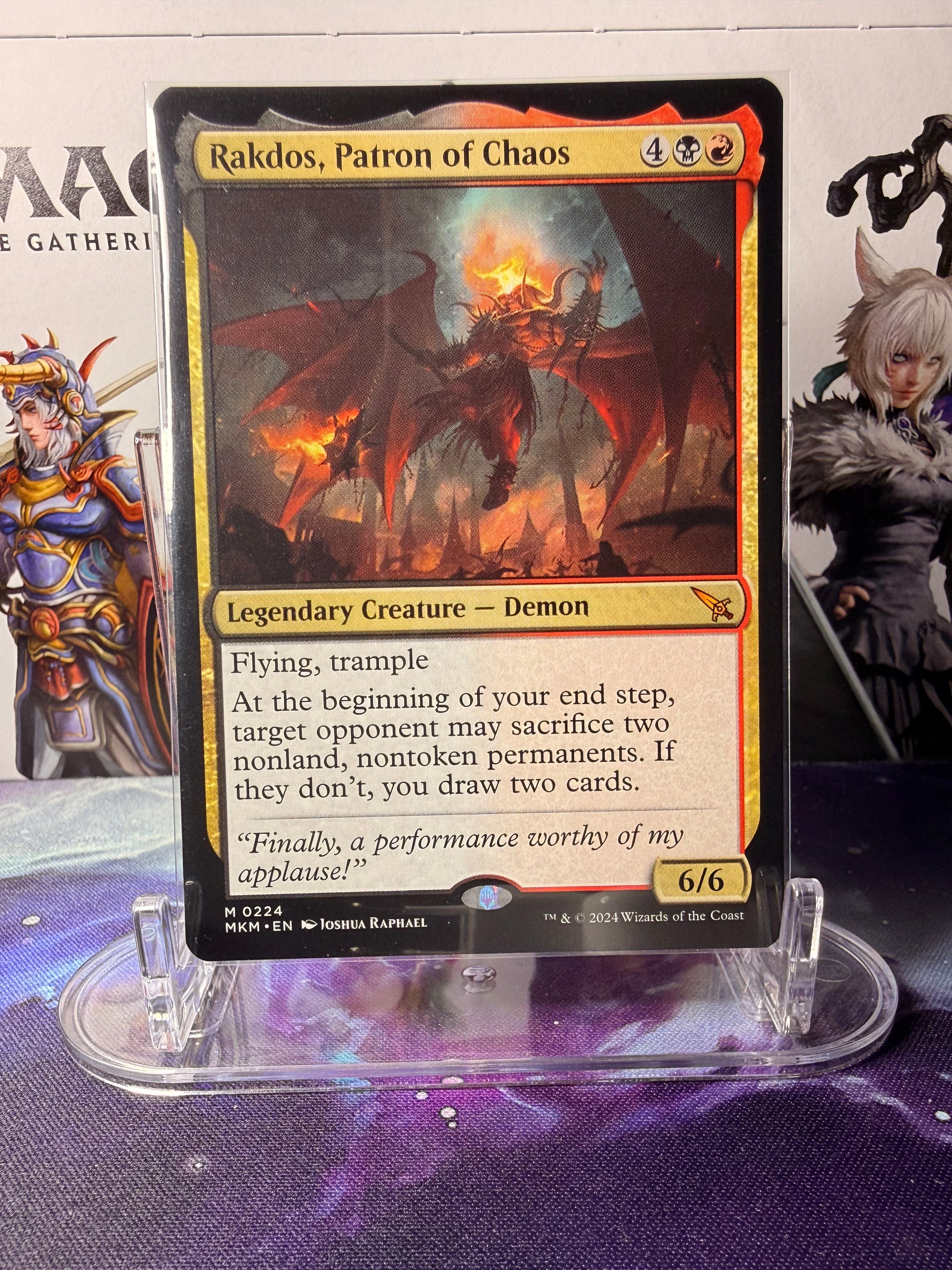 Rakdos, Patron of Chaos är ett kort till Magic: The Gathering från expansionen Murders at Karlov Manor (MKM). Kortet är märkt med kortnummer 0224 och ingår i setets ordinarie kortlista.
